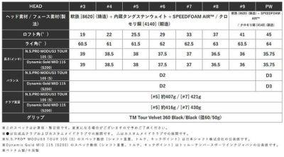 ※N.S.PROR MODUS3 TOUR 105 (S) のスペック数値 (シャフト重量、トルク、キックポイント)は日本シャフト株式会社の公表値です。