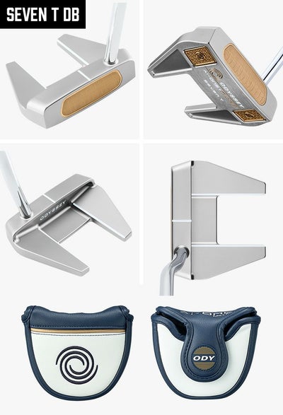 「Ai-ONE MILLED SILVERパター」に用意されたのは3機種で、フランジが直線を多用した造形となっているブレードタイプの「TWO T CH」、円形のフランジを持つマレットタイプにダブルベントネックを組み合わせた「SIX T DB」、そして、人気のツノ型にダブルベントネックを組み合わせた「SEVEN T DB」というラインアップです。なお、「SIX T DB」に装着されているアルミニウム製ソールプレートは、インサートやソールウェイトと同じくブロンズゴールドカラーとなっています。