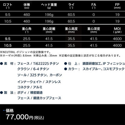 多くのヘッドに採用されるTi6Al4V合金と比べて、弾性率と超塑性(ちょうそせい)成形はTi6Al4V合金より優れている素材。 インパクト時の衝撃に負けないため、高初速を生み出すと共に、方向性のズレ幅も最小限に抑えられている。