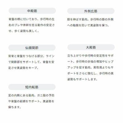 美姿勢は身体のラインをキレイに見せるだけでなく、柔軟性向上や正しい身体の動きが取れるようになり、日々の疲労感の軽減にも繋がります。はくだけで毎日がよりアクティブに元気な身体つくりに繋がります。