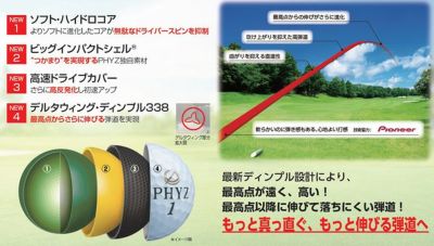 軟らかいのに弾き感もある、心地よい打ち感が魅力のPHYZ BALL。よりソフトに進化したコアが、無駄なドライバースピンを抑制するソフト・ハイドロコア、つかまりを実現するPHYZ独自素材のビッグインパクトシェル、高反発化し初速アップ効果を高めた高速ドライブカバー、最高点からさらに伸びる弾道を実現するデルタウィング・ディンプル338の4層構造です。