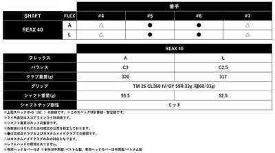クラブ長さ(インチ)REAX4038.7538.2537.7537.25