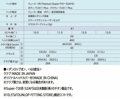 ヘッド素材フェース:VR-Titanium(Super-TIX 52AFS)  ボディ:Ti-811 Plus