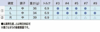 ●は通常生産、〇は特注対応可 ※クラブ重さは、変更になる場合があります。