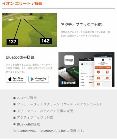 無料「Bushnell Golf アプリ」活用、各種設定・コースデータ更新も容易。