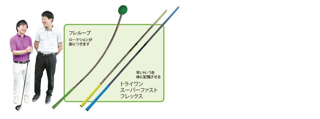 フェイスが開いては速い初速も台無しです。球を掴まえるメニューを紹介します。Ⅰオレンジウィップ金をいつもより高い位置に構え、大きくゆっくり体で10回振る。Ⅱフレループを大きくゆっくり10回振る。Ⅲ自分のクラブをいつもより高い位置に構え、ベタ足で10回振る。この3つはⅠスイング軌道を安定させカット打ちをフラットに、Ⅱはローテーションを感じⅢでスイングを整える効果があります。H/Sが上がり掴まりが増せば、ご自分の最長飛距離がゲットできます。