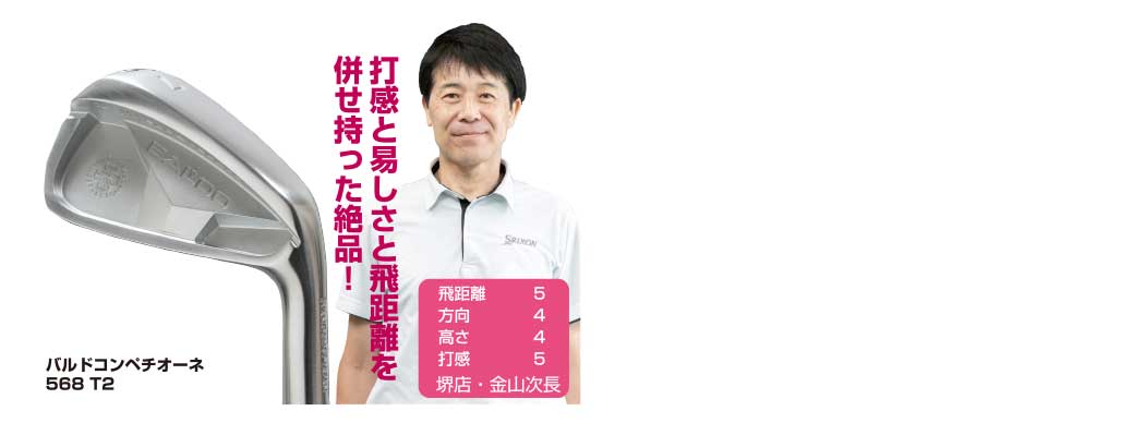 今まで沢山高性能アイアンを打ってきましたが、新型バルドのT2はデザインも使い易さも打感・打音もお見事です!特にツアー2。これがストロングロフトながらセミグースで小ぶりヘッド、シャープな形状。持ち球は選ばずどんな方にも構え易そうです。そして打感・打音はまさにマッスルバックの様な重く長く押せるインパクトでした。飛ぶアイアンでこれ程までに厚い当たりは今まであった?と思える程。キャリアに関係なくこだわりたい方にお勧めです。