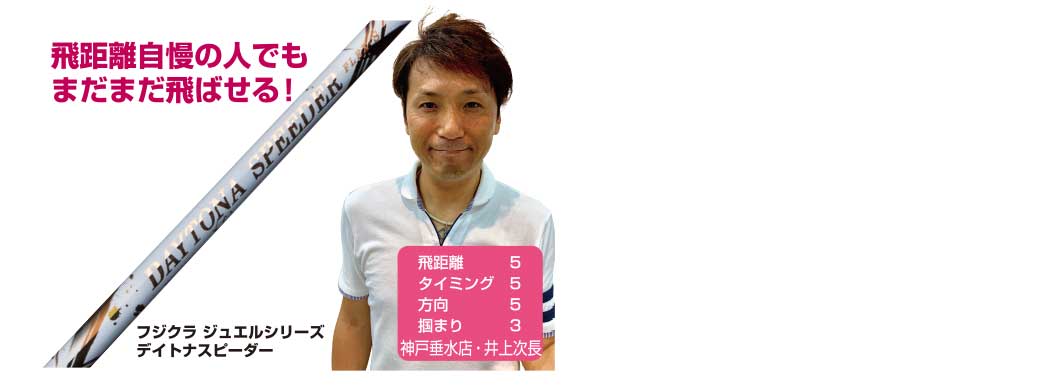 プッシュアウト?引っ掛け?そう感じたのに強い弾道で真っ直ぐ飛んでいる。使用者の方からこんなコメントを頂いているデイトナスピーダーは藤倉シャフトの集大成と銘打ってデビューし発売と同時に大人気で一時欠品状態となりました。一振りすると感じる心地良いしなり戻りとシャフト全体で球を強く押し出す分厚いインパクトはまさにシャフトで飛ばすという醍醐味を体感出来ます。東レ・三菱の高品質カーボンと金属繊維を融合させた飛ばせるシャフトです。