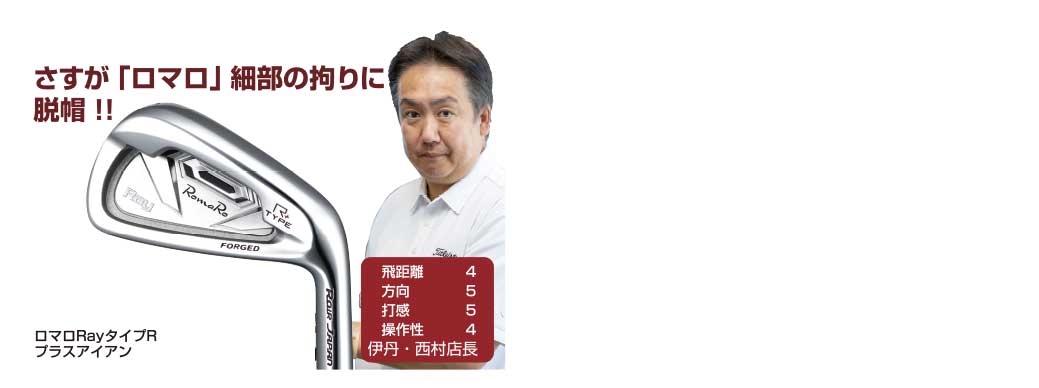 ロマロの人気シリーズタイプRのニューモデルが凄いんです。一見構え易い普通のポケットキャビティに見えますが、ソールは限界迄ガッツリえぐって、フェース面もプロ御用達の打感の良い銅下メッキを施した上でかなり薄くしています。そこから生まれた余剰重量がフェースの上下左右の4隅に配分しているので、ミスヒットにとんでもなく強い弾き感あるIRとなっています。軟鉄キャビティではめずらしい大き目のサイズも魅力!!